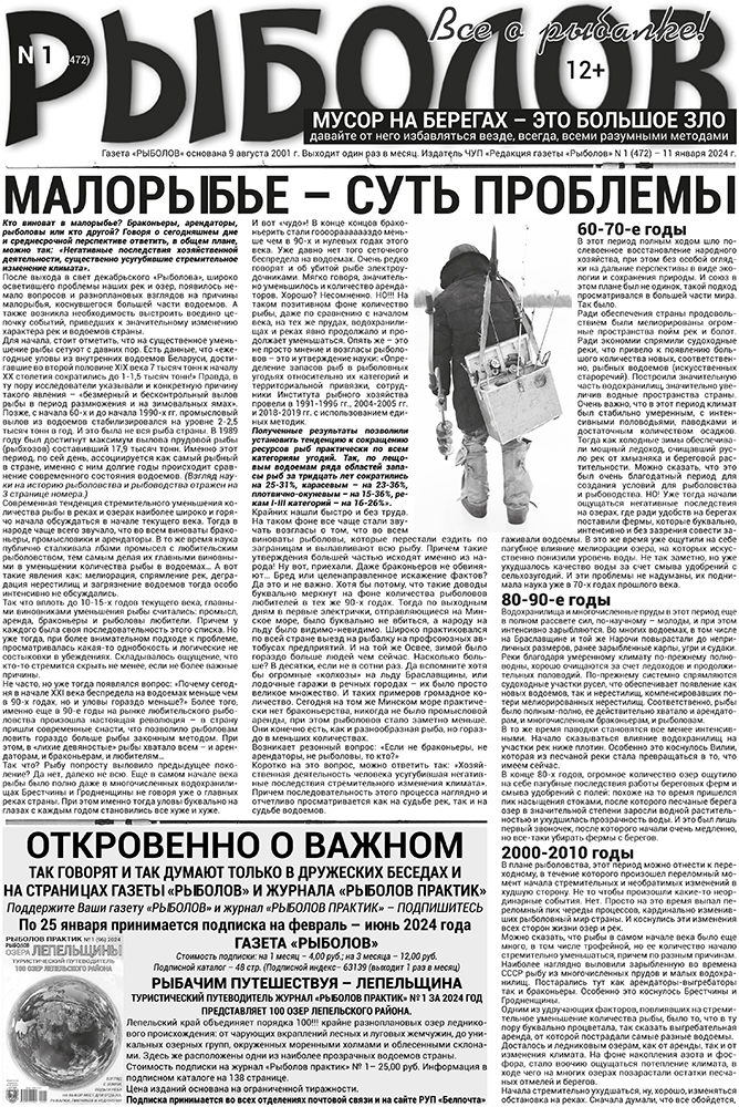 Актуальные темы современной рыбалки в январском номере газеты «Рыболов» № 1 за 2024 год