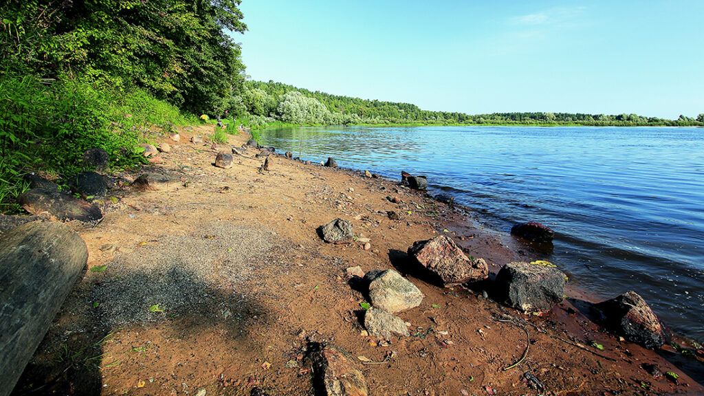 Мост трассы «М10» является своеобразной границей, у которой характер ДНЕПРА становится выраженно южным. Впереди царство широченных плесов, ивняка, песка и правобережных кряжей, имеющих доселе невиданную высоту. Будут, конечно, и дубравы, и боры, и даже березовые рощи, но все же в южной части Речицкого района на ДНЕПРЕ доминируют луговые, ивовые и большей частью песчаные берега, создающие ни с чем не сравнимую ауру южной реки.