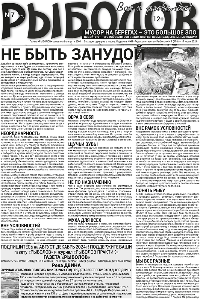 Душевные мысли помогающие выжить в столь непростые времена в июльском номере газеты «Рыболов» № 7 за 2024 год.